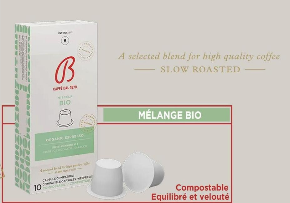 Café BARBERA ORGANIC ESPRESSO (intensité 6)* 10 capsules